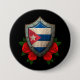 Worn Cuban Flag Shield with Red Roses 3 Inch Round Button