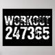 Worn out and scratched text Workout 247365 in white colour with black background. Perfect for anyone who is lifting, fitness, training, bodybuilding and going to the gym.