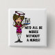 A cute nurse design featuring a brown haired nurse with a tray with water and a pitcher and text that reads We'd All Be Worse Without a Nurse on nurse T-shirts, bags, mugs, stickers, cards, magnets, and other nurse apparel and gifts.