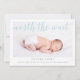 Welcome your sweet miracle with this photo birth announcement. Featuring a photo with the message "Worth the Wait" in blue, with the baby's name and stats in grey. It also allows for a photo on the back.