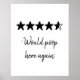 The shipping was the problem. Box was flimsy and item got bent.. only suggestion would have been to put in a canister or mark fragile. Printing was exactly as shown