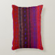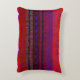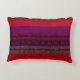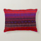This decorative fine art accent pillow features an image of a colourful abstract pattern resembling woven horizontal bands. The brilliant colours of red, purple, blue and black seem to glow.