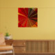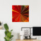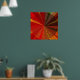 This poster features a decorative geometric abstract design which would be fantastic on your wall! Brilliant colours of red, orange, gold, brown, yellow and green all converge at the centre in a vortex pattern. The central circle has repeating triangles of various woven textures. Outside the circle are lines of the same vivid colours moving toward the middle.