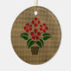 Lovely red flowers with green leaves in a brown pot on a tan basket-weave. Weave is computer generated and fake, but it looks cool on stuff!