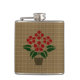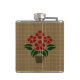 Lovely red flowers with green leaves in a brown pot on a tan basket-weave. Weave is computer generated and fake, but it looks cool on stuff!