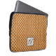 Simple yet decorative, this design of graphically woven rattan adds the personal touch to your laptop sleeve! The main colour is yellow, and the solid dark brown background can be recolored by you. Change this product's base colour to play with new effects! The custom initial is placed on a light square with black border. Text can easily be customized, and the entire monogram can be repositioned or removed. Also text font, size and colour can be adjusted.