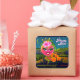 WhimsyQuest Toys Princess Peachy Keen in vintage crate label design. Princess Peachy resides over her Peach Orchard under a beautiful starry night sky.