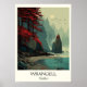 Discover the rugged beauty of Wrangell, Alaska, with this captivating vintage travel design. Featuring vibrant red leaved trees on a rocky coastline, a unique depiction of Southeast Alaska's natural charm.