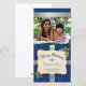 A bright blue chevron pattern seems like wrapping paper on this festive Christmas photo card. Silver pinstriped ribbons meet behind a frame adorned with holly berries with your photo printing above. The frame contains a curved Christmas message and customizable text to send your holiday best. Available in alternate colours with matching products.