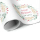 This elegant and stylish Christmas wrapping paper features a colorful wreath with green and gold leaves and red berries, as well as script typography with "Merry Christmas" message on a white background.