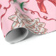 Add a playful twist to your holiday gifting with this pink Christmas bow and ribbon wrapping paper. This cheerful print features a soft pink background decorated with glossy red satin bows, candy-stripe gift toppers, curling decorative ribbons, and a scattering of snow-dust texture for a festive touch.