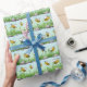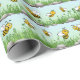 Wrapping paper for gifts for kids, birthdays parties, family celebrations. Design with cute and lovely bees in grass, soft green blue colours.