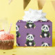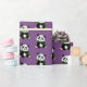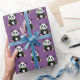 Gift wrapping paper shown in a purple background colour with a cute panda bear print.
