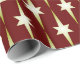 Wrapping paper has a star on it, good for Christmas gifts or any time.