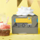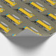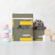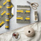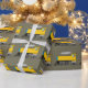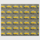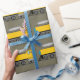RR2 wrapping paper is decorated with tiny yellow steam engines against a dark background, great gift wrapping paper