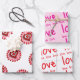 Wrapping Paper Sheets Valentine's Love Red Hearts