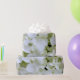 The hydrangea is a glorious, flowering shrub. The flowers can be pink, purple, blue, cream and, depending on the soil, magical combinations of these colours. In some varieties of hydrangea, the pH of the soil will determine the colour. Blue requires acidic soil, with a pH of about 5.0 to 5.5. Pink or purple requires an alkaline soil, with a pH of 6.5 to 7.0. Neutral soil will generally result in cream-coloured petals, but you can also get what some call "blurple" (blue and purple). Like clusters of tiny butterflies, the small florets gather into stunning spheres. The hydrangea is said to represent grace, friendship, lavish beauty and the preservation of love that lasts forever. This latter sentiment is likely why white hydrangeas are so popular for bridal bouquets. The pattern on this gorgeous wrapping paper repeats every three linear feet, but each wrapped gift will be covered in these spectacular white blooms. It is an excellent choice for birthdays, anniversaries and Mother's Day and a really good option for bridal showers and wedding presents.