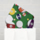 In the 19th century a poolroom was a horse race betting parlour. Pool tables were installed so the bettors could pass time between horse races. Billards, or pool, is the descendant of a game similar to croquet that was played in 15th-century Europe. Though we don't know for sure, it is strongly suspected that billiards came to America with Dutch and English settlers. By the 1700's, skilled cabinet makers were crafting beautiful tables, though the equipment was, otherwise, quite primitive. Fifteen-ball pool came on the scene in the late 1800's and grew in popularity through the 1940's. Billiards was revived in 1961 with the release of the movie THE HUSTLER. It enjoyed another surge in the mid 1980's with the release of the movie sequel, COLOR OF MONEY. Since that time, there has been an evolution of the environs in which we find pool tables -- they're in restaurants and night clubs and sports bars, allowing pool to find a modern audience and new generations of enthusiasts. This marvellous design is layers of billiard balls in varying sizes for greater depth. They are scattered all over a "green felt" backdrop. This fabulous tissue paper is an excellent choice for your favourite "pool shark" and is especially dramatic when paired with the matching gift bag offered in this collection.