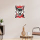 This design is of a ferocious panda head with a skull emerging from its open mouth. The pandas mouth is open showing its teeth giving off a menacing vibe. The background is a mix of splashes of red paint with black splatters. There is the kanji symbol for beast.