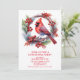 Wreath and cardinal party invitation in red for a festive Holiday party.