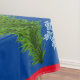 Simple and classy Decor for Holiday Christmas Wreath garland tablecloth. Great for Christmas colour combination that you can change to suit your indoor or outdoor party themes. Shiny Christmas white lights, candy canes, Christmas bulbs decorated vibrant green pine branches and snow flakes. Christmas décor for indoor or outdoor. You and customize the colour of the border, or the style of the table cover to suit your taste. Simple elegant design for the holiday season for the home. Great gift idea for those that love holiday decorating and unique tablecloths. You can add text to this festive scene or leave blank.