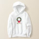 Stay warm while showing your holiday spirit in this hoody with a Christmas wreath and Merry Christmas written beneath it.