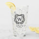 Monogrammed beer glass for your best man with his initial inside a round frame decorated with leaves above name and wedding party role.