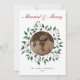 Wreath Script Married & Merry Newlywed Photo Holiday Card