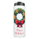 This cute holiday tumbler has a colorful wreath decorated with gingerbread men and a big red bow and a Happy Holiday greeting, or personalize with your own. Great gift for friends or family or keep in the car to enjoy drinks on road trips over the holidays.