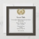 Wreath and shield icon. Custom background colour. Custom monogram. Custom text on both sides.