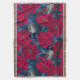 Vector seamless pattern made of hand-drawn fairy-wrens and peonies. Blue and red version.