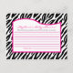 These adorable Hot Pink Zebra Print Writable Advice Cards are perfect addition to any baby shower or birthday party. Simply hand these cards to your guests, along with fine tip Sharpie pens. Your guests can then write down any advice they have for the new mommy to be or for the birthday boy or girl. These are printed at a 4.25" x 5.6" size on glossy ultra heavyweight 120 lb. cover stock (card stock). We have an entire line devoted to this design here at zazzle store under the * Design Collections menu tab to include invitations (5x7), Return Labels, Mailing Labels, Envelope Seals, Postage Stamps, Cup Cake Picks, Water Bottle Wrappers, Hershey's 1.55 oz. Large Bar Wrappers, Hershey's Miniature Stickers, Microwave Popcorn Bag Wrappers, Writable Place Cards, Goody Bag Toppers, FLAT Thank You Cards (4x5), FOLDED Thank You Cards (4x5), Favour Tags, Menu Cards, Mint Matchbooks, Lollipop Covers, Bookmarks, Bingo Cards, Bingo Card Markers, Bingo Card Call Out Sheets, Writable Advice cards (4x5), etc.