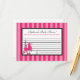 These adorable Pink Poodle Paris Eiffel Tower Writable Advice Cards are perfect addition to any baby shower or birthday party. Simply hand these cards to your guests, along with fine tip Sharpie pens. Your guests can then write down any advice they have for the new mommy to be or for the birthday boy or girl. These are printed at a 4.25" x 5.6" size on glossy ultra heavyweight 120 lb. cover stock (card stock). We have an entire line devoted to this design here at zazzle store under the * Design Collections menu tab to include invitations (5x7), Return Labels, Mailing Labels, Envelope Seals, Postage Stamps, Cup Cake Picks, Water Bottle Wrappers, Hershey's 1.55 oz. Large Bar Wrappers, Hershey's Miniature Stickers, Microwave Popcorn Bag Wrappers, Writable Place Cards, Goody Bag Toppers, FLAT Thank You Cards (4x5), FOLDED Thank You Cards (4x5), Favour Tags, Menu Cards, Mint Matchbooks, Lollipop Covers, Bookmarks, Bingo Cards, Bingo Card Markers, Bingo Card Call Out Sheets, Writable Advice cards (4x5), etc.
