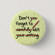 This round button design shows a lined, slightly crumpled yellow notebook page with a red pen and the words, "Don't you forget to edit your writing." Editorial marks are made on it in red, so it now reads, "Don't forget to edit." It's a great design for a fiction writer / author / novelist, an editor, an English teacher / professor, or a literary agent.