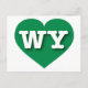 This postcard features a vibrant green heart containing the bold, white, upper case letters WY, the official abbreviation for Wyoming, the cowboy state. The reverse side of the card is blank, awaiting your personalized text or handwritten sentiments.