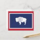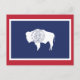 This distinctive design features a deep dark blue field, symbolizing the vast Wyoming sky, justice, and loyalty. At its heart, a magnificent white bison (or buffalo) stands prominently, representing the state's wildlife and its historical ties to the American West. A bold red border frames the bison, recalling the blood shed by pioneers and Native Americans. The bison itself is branded with the state seal, featuring a banner with the powerful motto "EQUAL RIGHTS," honouring Wyoming's legacy as the "Equality State.
