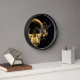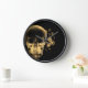 The size of the clock is dramatic and the abstract alcohol ink design is soothing and intricate at the same time. I chose the black frame that adds pop to the blue and gold design. The gold printing would be better in a slightly darker or larger font. I love it and I’m looking for just the right place in ny new apartment. I would recommend this clock for a personal gift or a present. I feel that the quality is excellent for the money! I’m a bit of a clock nut so I’m pretty particular about my purchases. The clock is larger in diameter than many if the clocks I have, so it stands out very well. I think a slightly darker printing color and a moderately larger size would best suit a professional decor or add more impact in a work place item.