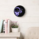 The size of the clock is dramatic and the abstract alcohol ink design is soothing and intricate at the same time. I chose the black frame that adds pop to the blue and gold design. The gold printing would be better in a slightly darker or larger font. I love it and I’m looking for just the right place in ny new apartment. I would recommend this clock for a personal gift or a present. I feel that the quality is excellent for the money! I’m a bit of a clock nut so I’m pretty particular about my purchases. The clock is larger in diameter than many if the clocks I have, so it stands out very well. I think a slightly darker printing color and a moderately larger size would best suit a professional decor or add more impact in a work place item.