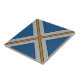 This tile features a graphic "X" design in yellow ochre and pale gray-blue outlined in black, with a deep blue background.