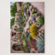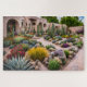 A courtyard at a house in the desert uses cactus and succulents to conserve water on this beautiful garden jigsaw puzzle.