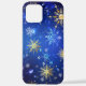 XMAS Blue Background with Golden Snowflakes iPhone Case
