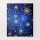 XMAS Blue Background with Golden Snowflakes Jigsaw Puzzle
