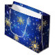 XMAS Blue Background with Golden Snowflakes Large Gift Bag
