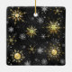 Xmas Golden Snowflakes on Black Background Ceramic Ornament