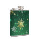 Xmas Golden Snowflakes on Green Background Hip Flask
