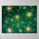 Green Christmas background with gold and green jewellery snowflakes. Golden snowflakes. Xmas.