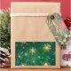 Green Christmas background with gold and green jewellery snowflakes. Golden snowflakes. Xmas.