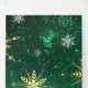 Xmas Golden Snowflakes on Green Background Tri-Fold Holiday Card