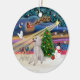Xmas Magic - Poodle (Standard white, ribbons) Ceramic Ornament