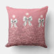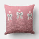 Xmas Sparkling Trees Blush Pink Faux White Bow Throw Pillow